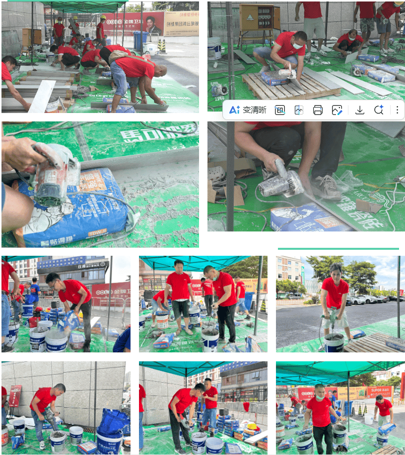 马可波罗瓷砖五星镶贴工竞赛由贴得稳岩板大板瓷砖胶贴新抵家铺贴商学院院长徐顺兰亲身指点,一一记实分数。也但愿借帮大赛。